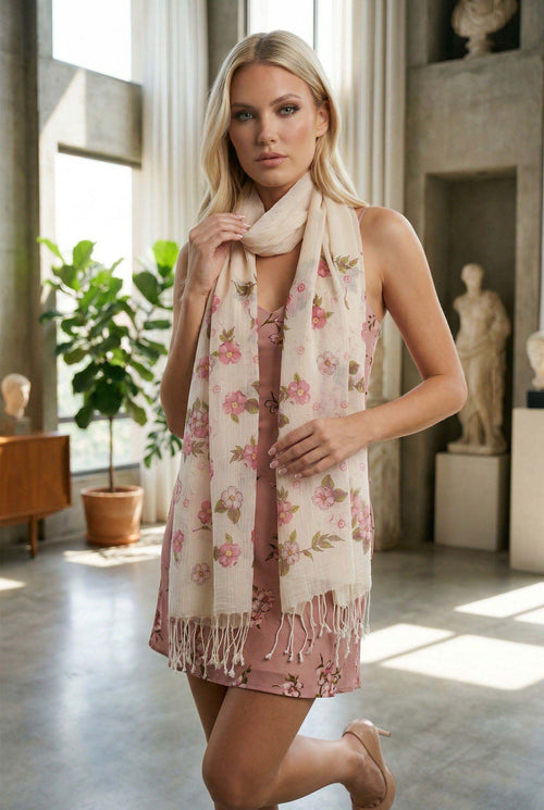 Begonvil Desenli Pamuk Fular 50x200 cm | %100 Pamuk Zarif Kadın Fuları